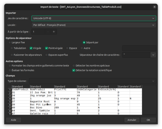 Regardez la conséquence dans les données quand vous activez ou pas le séparateur Virgule.